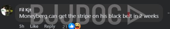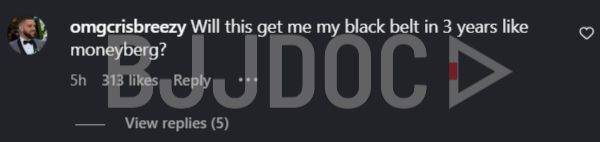 The announcement immediately drew sharp reactions from the BJJ community with commenters making pointed references to Moneyberg’s controversial three-year-and-seven-month path to black belt.