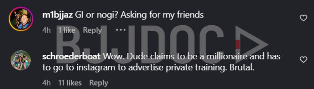 “Wow. Dude claims to be a millionaire and has to go to instagram to advertise private training.”