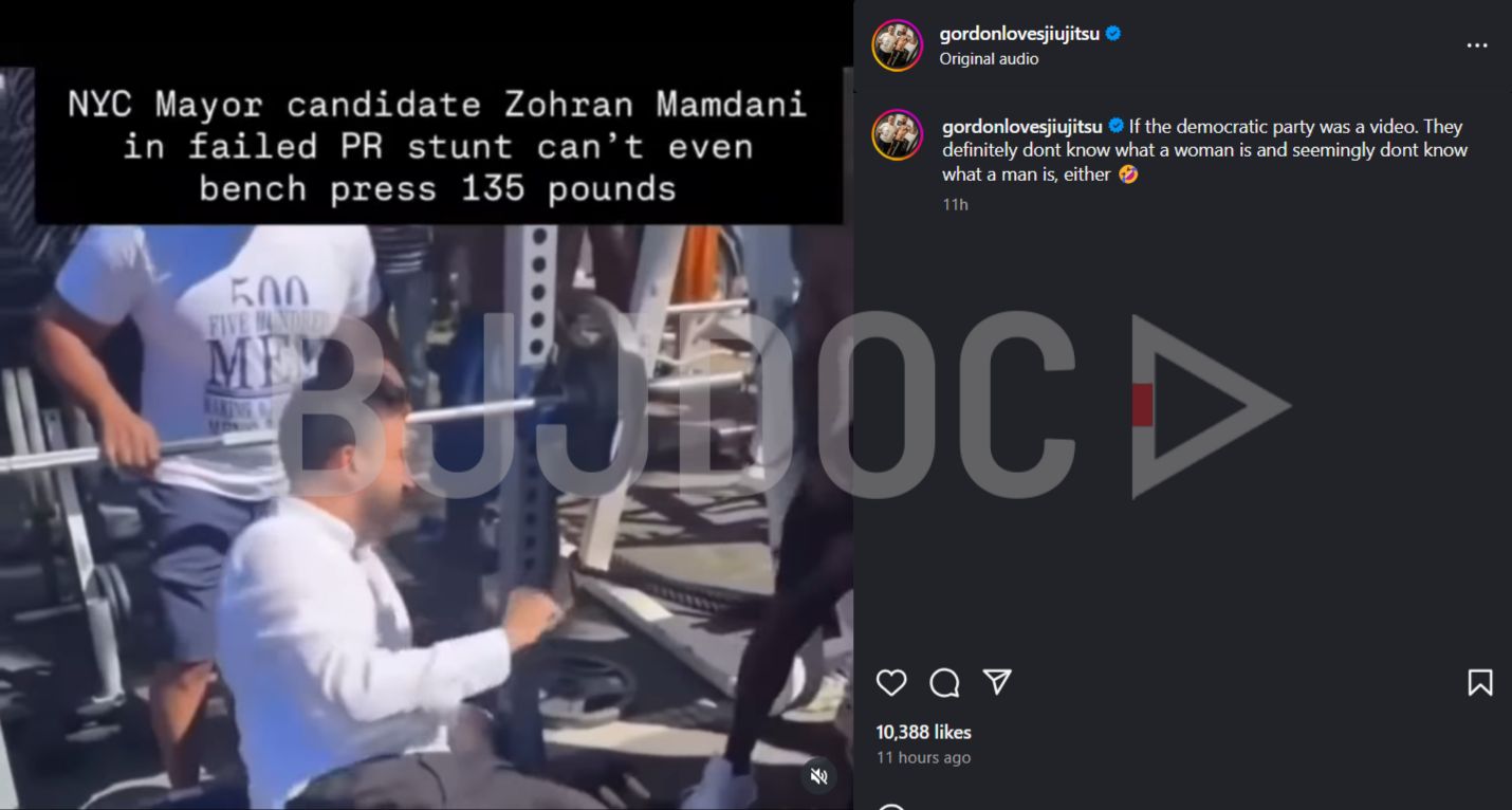 Gordon Ryan, Brazilian Jiu-Jitsu’s most polarizing champion, has once again thrust himself into the political spotlight—this time by mocking New York City mayoral front-runner Zohran Mamdani for struggling to bench press 135 pounds during Brooklyn’s Men’s Day event. On Instagram, Ryan reposted the clip with the caption: