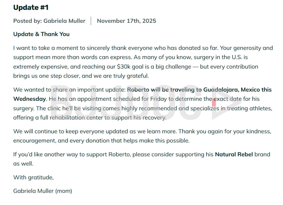 The family also revealed new details about Jimenez’s treatment plan. He is scheduled to travel to Guadalajara, Mexico this Wednesday with a Friday appointment at a specialized clinic to finalize the surgical date. The facility comes highly recommended and focuses specifically on treating athletes, offering comprehensive rehabilitation services designed to help competitors return to peak performance.