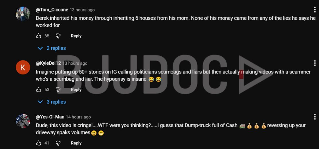 “Imagine putting up 50+ stories on IG calling politicians scumbags and liars but then actually making videos with a scammer who’s a scumbag and liar. The hypocrisy is insane.”