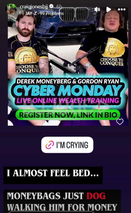 Ryan who boasts nearly a million Instagram followers has dedicated significant social media space to promoting Moneyberg’s course including joint posts and meetups with course purchasers. Critics argue this partnership is particularly troubling given Moneyberg’s reputation. Previously exposed for questionable black belt credentials and accused of running misleading courses across multiple industries Moneyberg has become a polarizing figure in the MMA world.