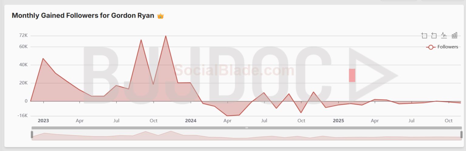 Gordon has been losing followers for over a year.