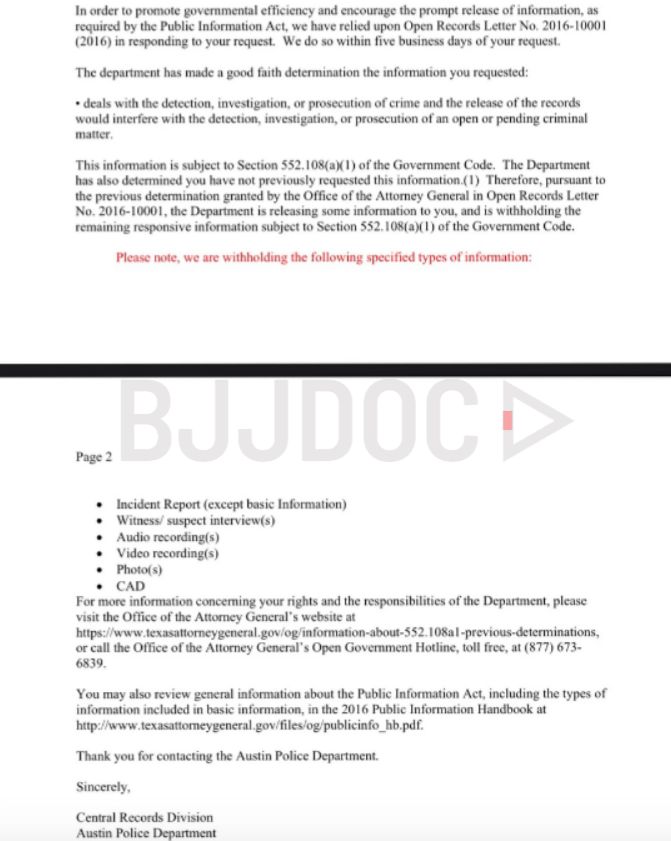While Texas law generally provides for public access to certain police records, bodycam footage requests can be denied for various reasons including ongoing investigations, privacy concerns, or if the release could interfere with prosecution. The Austin Police Department has not publicly commented on the specific grounds for denying Jones’s request.