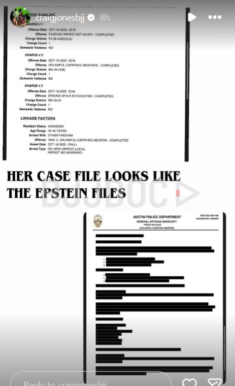 Santoro is scheduled for pretrial appearances on December 15 in Travis County Court at Law. The evading charge carries potential prison time if prosecuted to conviction. Court records show she posted $3,000 bond for each case and faces restrictions on operating vehicles without valid licenses and insurance.