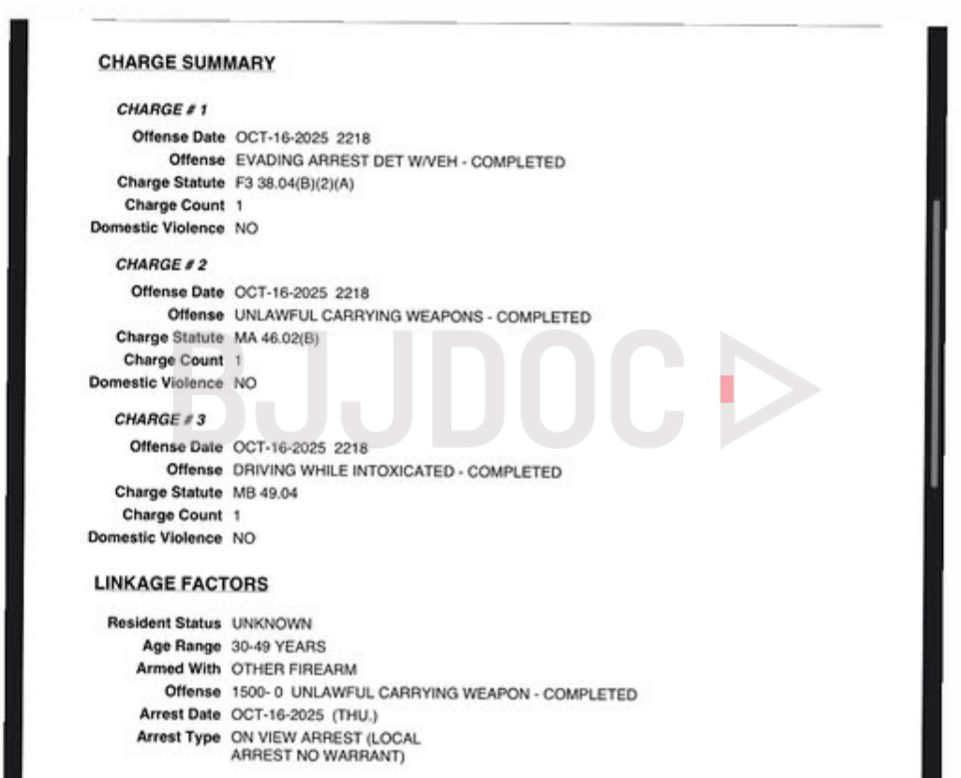 The denial comes amid heightened interest in the case within the grappling community. Santoro faces charges stemming from two separate incidents in October, including evading detention using a motor vehicle, a third-degree felony, after a high-speed chase that exceeded 120 mph, as well as weapons-related charges and reckless driving from a subsequent crash.