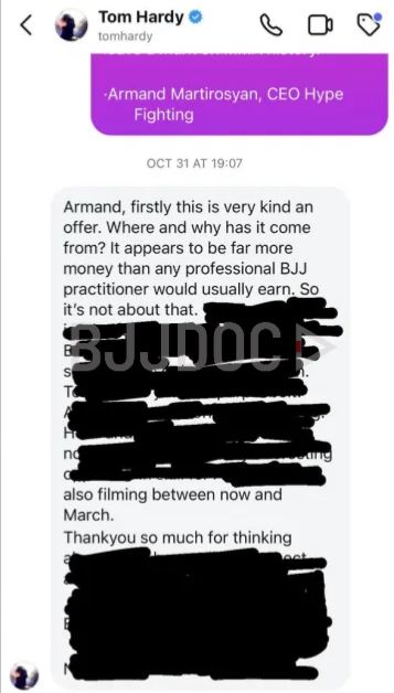 “Arman, firstly this is a very kind offer. Where and why has it come from? It appears to be far more money than any professional BJJ practitioner would usually earn. So it’s not about that,”