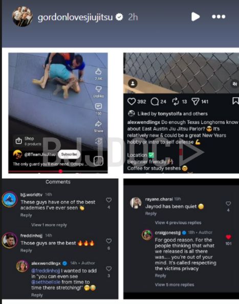 Ryan also shared posts showing Jones and several jiu jitsu media outlets promoting East Austin Jiu Jitsu, where Belisle is now believed to train, rather than Simple Man Martial Arts, which remains under the leadership of Nicky Ryan and Damien Anderson.