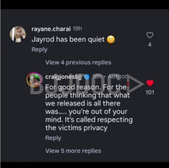 “For good reason. For the people thinking that what we released is all there was, you’re out of your mind. It’s called respecting the vic tims’ privacy.” – Craig Jones wrote on social media.