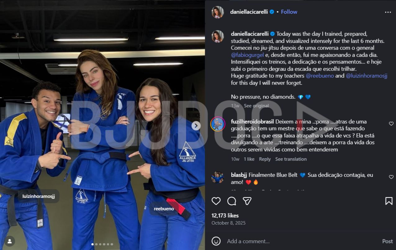 When Daniella Cicarelli received her blue belt in Brazilian Jiu-Jitsu after just six months of training, the reaction inside the community was immediate and divided. The Brazilian model and former MTV Brasil host became the center of a debate that touches one of the sport’s most sensitive issues, belt promotions.