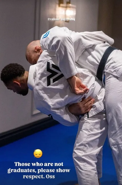 The images captured Cunha executing throws and controlling positions during a training session. According to sources, his instructor Lucio Lagarto, who trains students at Valour Jiu-Jitsu. Lagarto recently promoted Cunha to white belt with one stripe.