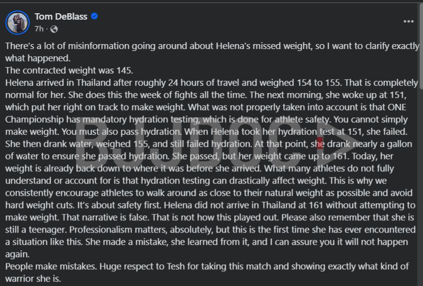 Tom DeBlass, ONE Championship’s Vice President of Grappling, previously corroborated key parts of this timeline, noting that hydration testing designed for athlete safety can dramatically alter weight outcomes and that Crevar did not arrive in Thailand without attempting to make the contracted limit.