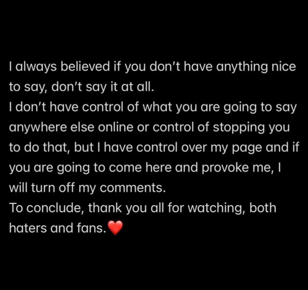 “This post is for people who support me, and for those who understand how challenging these situations can be.”