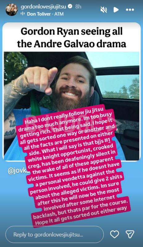 For his part, Ryan shared that 300 of his 900,000 followers liked the post he made on story calling out Craig Jones.