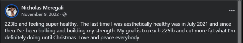 Meregali is now walking around at approximately 220 lbs (100 kg) and competing in the 205 lbs (93 kg) and above categories for UFC BJJ.