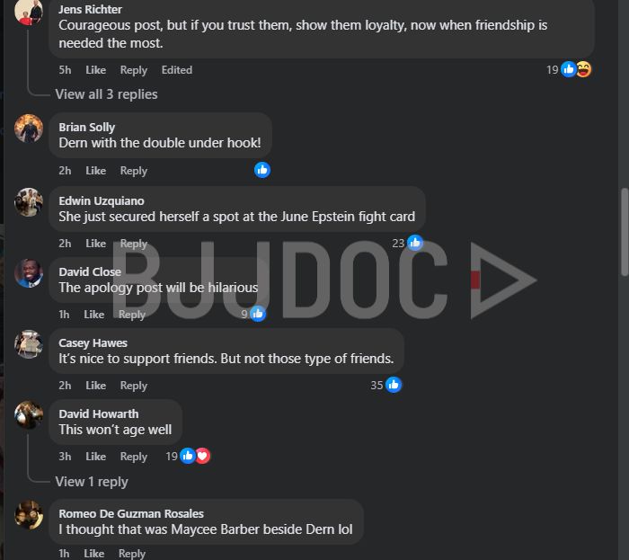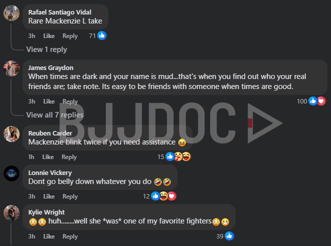 The response to the post by Mackenzie Dern was swift and largely critical. Comments ranged from disappointed fans reconsidering their support to pointed questions about her judgment given the nature of the allegations.