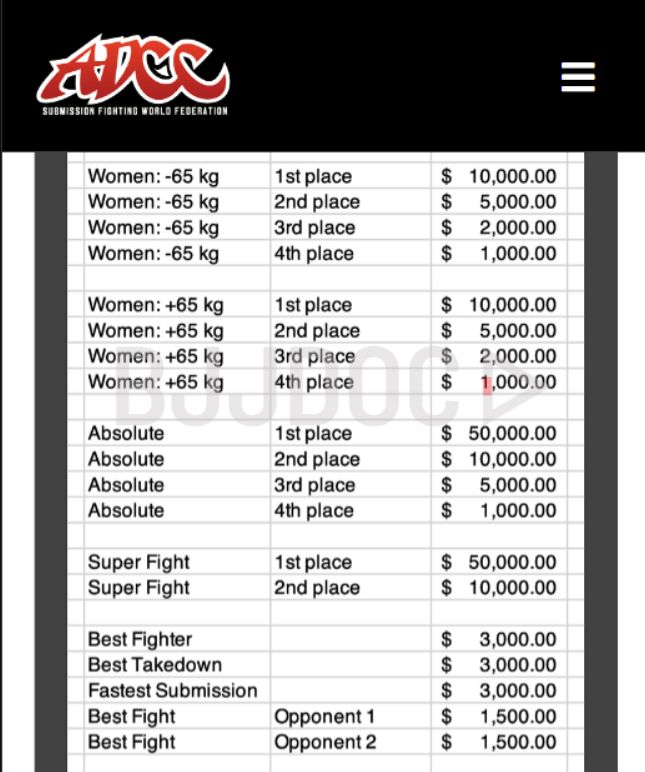 The situation surrounding ADCC reflects the same underlying structural weakness. In many cases you’ll be paying to get injured for a chance to win exposure. The current purse structure can’t even match what the biggest names earn doing a seminar for a single weekend.