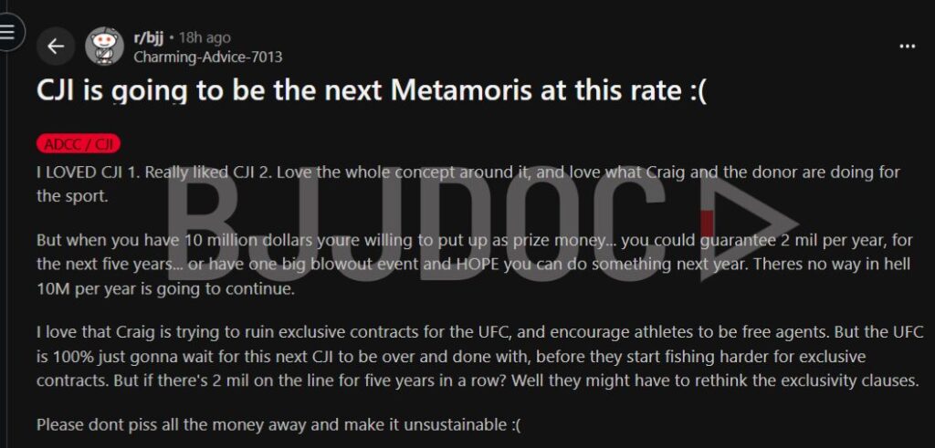The concern itself carries some weight. A $10 million purse is unprecedented in competitive grappling, and some community members have pointed out that spreading that same funding across multiple years could do more lasting good for the sport than a single spectacular event.