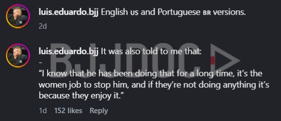 Louis Eduardo made the decision public through a written statement, describing how the situation unfolded after a female student came to him with a report describing what he called a clear instance of harassment involving one of the professors. Before approaching the gym’s administration, Eduardo reached out privately to other women who trained there, asking whether any of them had experienced uncomfortable or unusual situations with the same individual.